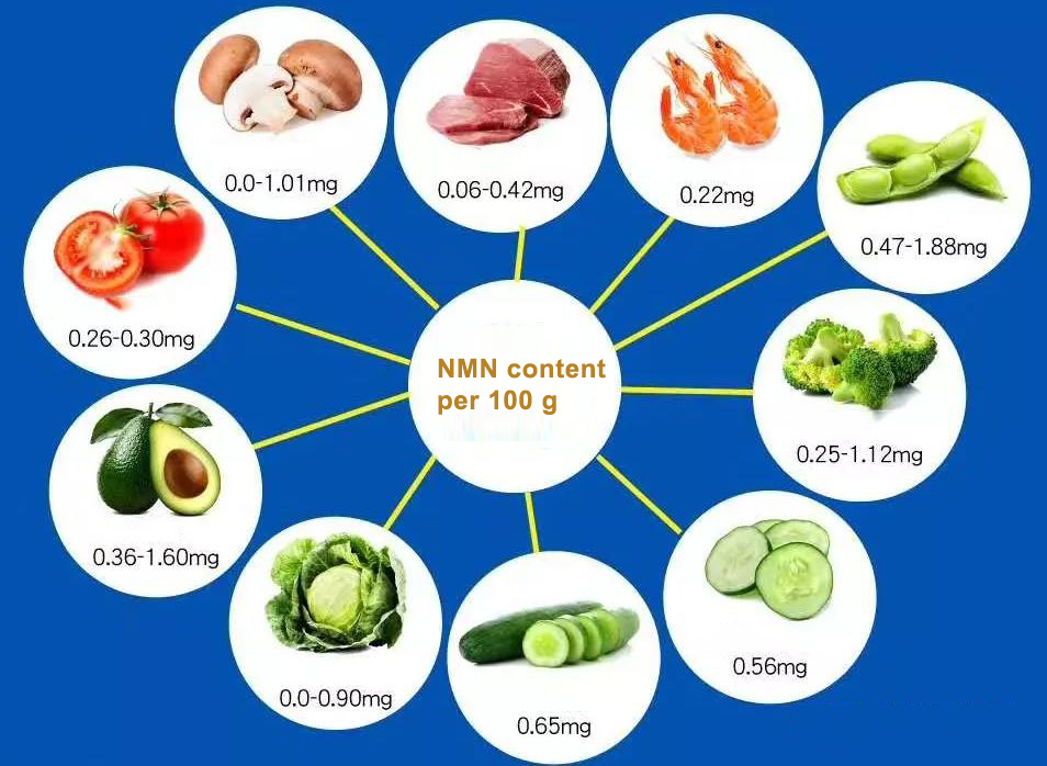 Even with a diet rich in vegetables, the total NMN intake from food typically reaches only microgram levels per day.